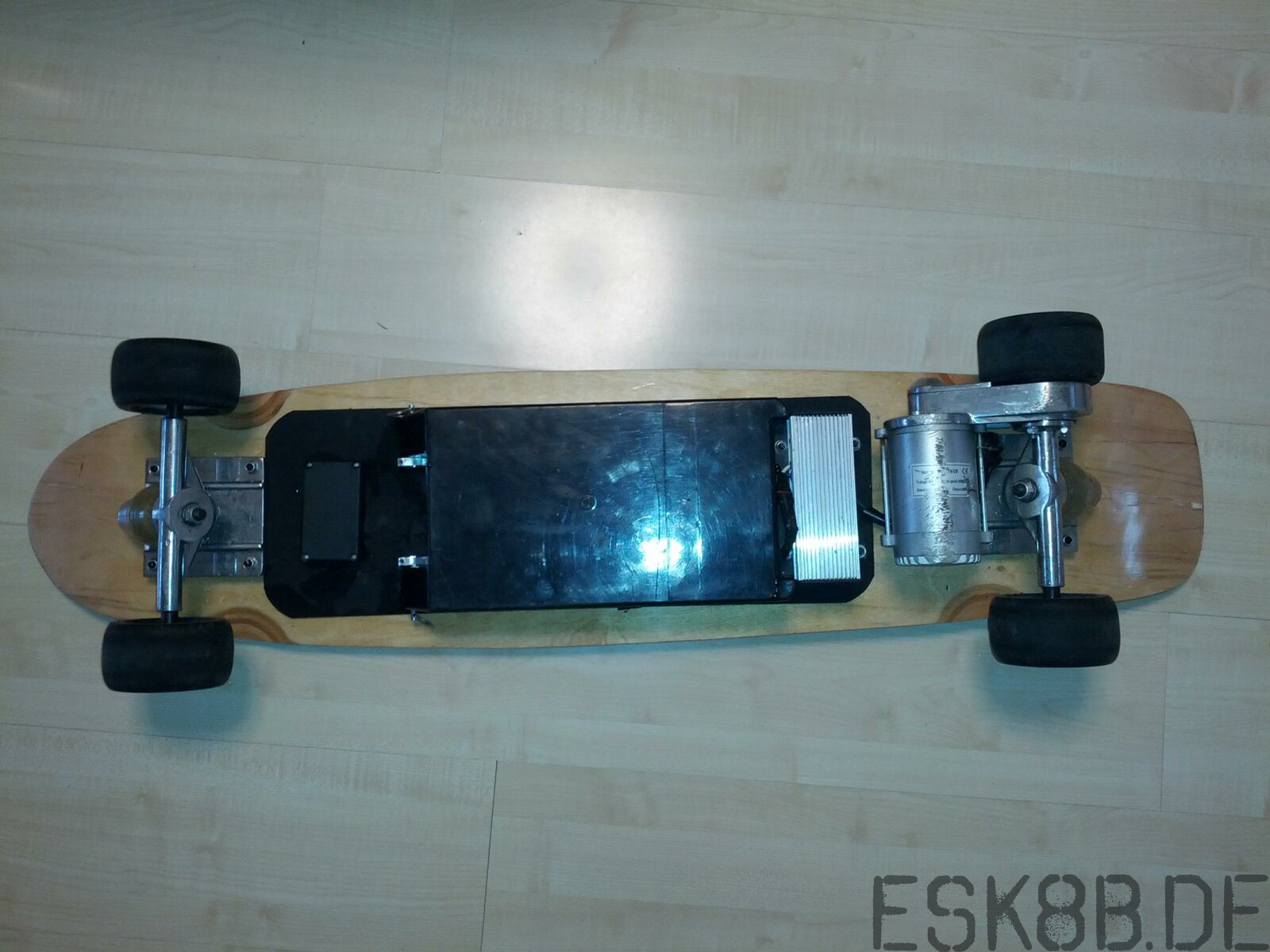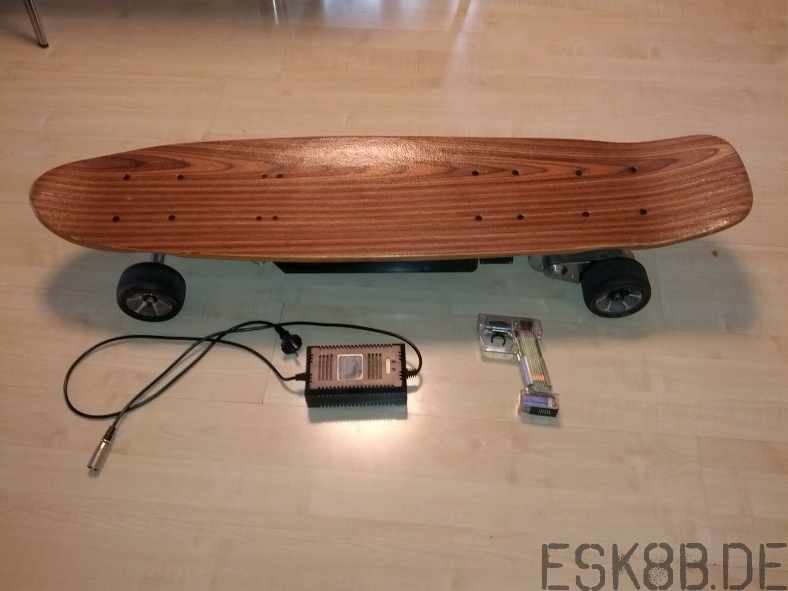 Fry Geschrieben 31. Mai 2015 Geschrieben 31. Mai 2015 Zum Verkauf steht ein 600W Elektroskateboard. Wer nach so einem Board sucht, kennt sicher die technischen Details. Es handelt sich hier um eine sehr seletene Version, mit dem schönen, dunklen Holz-Deck (ohne irgendwelche Aufkleber). Das Board ist in gutem Zustand. Reifen sind top, Griptape auch. Lediglich der Akkukasten sieht etwas mitgenommen aus, es fehlt auch die Abdeckung der Ladebuchse. Fernbedienung und Ladegerät sind natürlich mit im Lieferumfang! (Bei Interesse sogar doppelt vorhanden) Zitieren