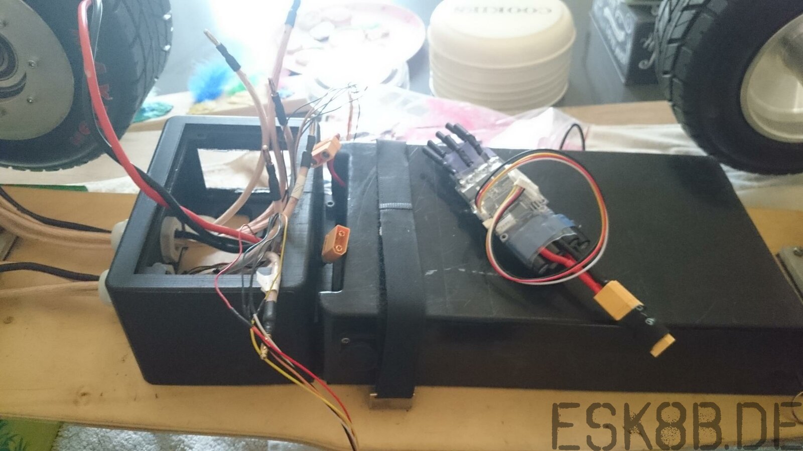 eXo Geschrieben 29. März 2016 Autor Geschrieben 29. März 2016 Moin EXO hier das Foo von dem Motor im Kartreifen Dr. B orginal Zustand Umbau Mit Kontroller Hallo Dr. Board, Das sieht ja schon mal sehr spannend aus. Darf ich dazu ein paar Fragen an dich richten? - Hast Du dein Mobo bereits fertig umgebaut bzw. mit Radnabenmotoren ausgestattet? - Was haben deine Motoren für Kennwerte? (Leistung?, Spannung?, max. Strom?, max. Speed? Drehmoment? ) - Hast du die originale Zuleitung der Motoren durch dickere Leiter ersetzt? - Wie viel Gewicht bringt einer deiner motorisierten Kartreifen auf die Waage? - Wie genau hast Du die Motoren an der Achse befestigt? - Wie ist das Beschleunigungsverhalten mit den VESC? (Linear zum Hebelweg?) - Fährst Du die Motoren mit Hallsensoren und FOC? - Hast Du eventuell einen Einblick in das passende Motorconfig für mich? Grüsse aus der schönen Schweiz eXo Zitieren