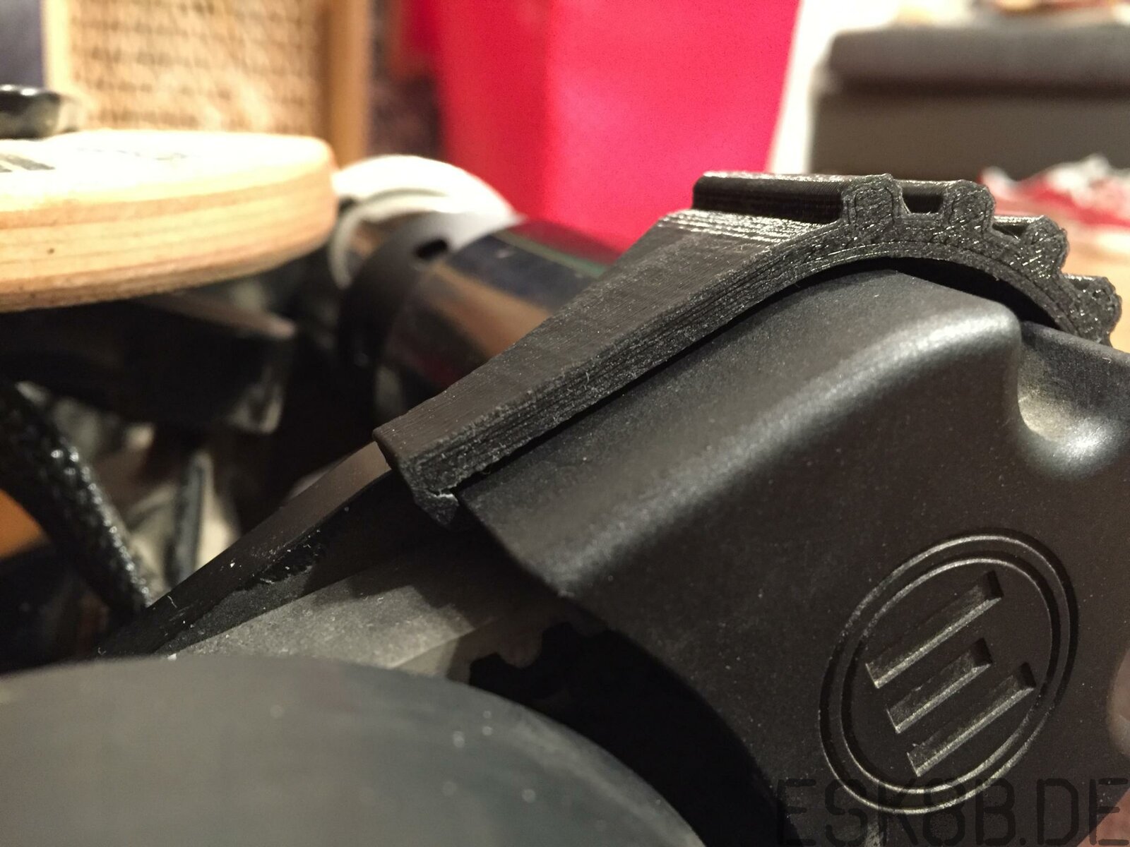 Ich habe es erst so gestaltet das man den Guard einfach aufklippen kann, allerdings sitzt er dann nicht fest genug. Um ihn zu montieren müsst Ihr lediglich die Kappe die über dem Antriebsritzel sitzt (2x Hex) entfernen und ihn dann auf die Kappe schieben, anschliessend wieder montieren und passt :peace: