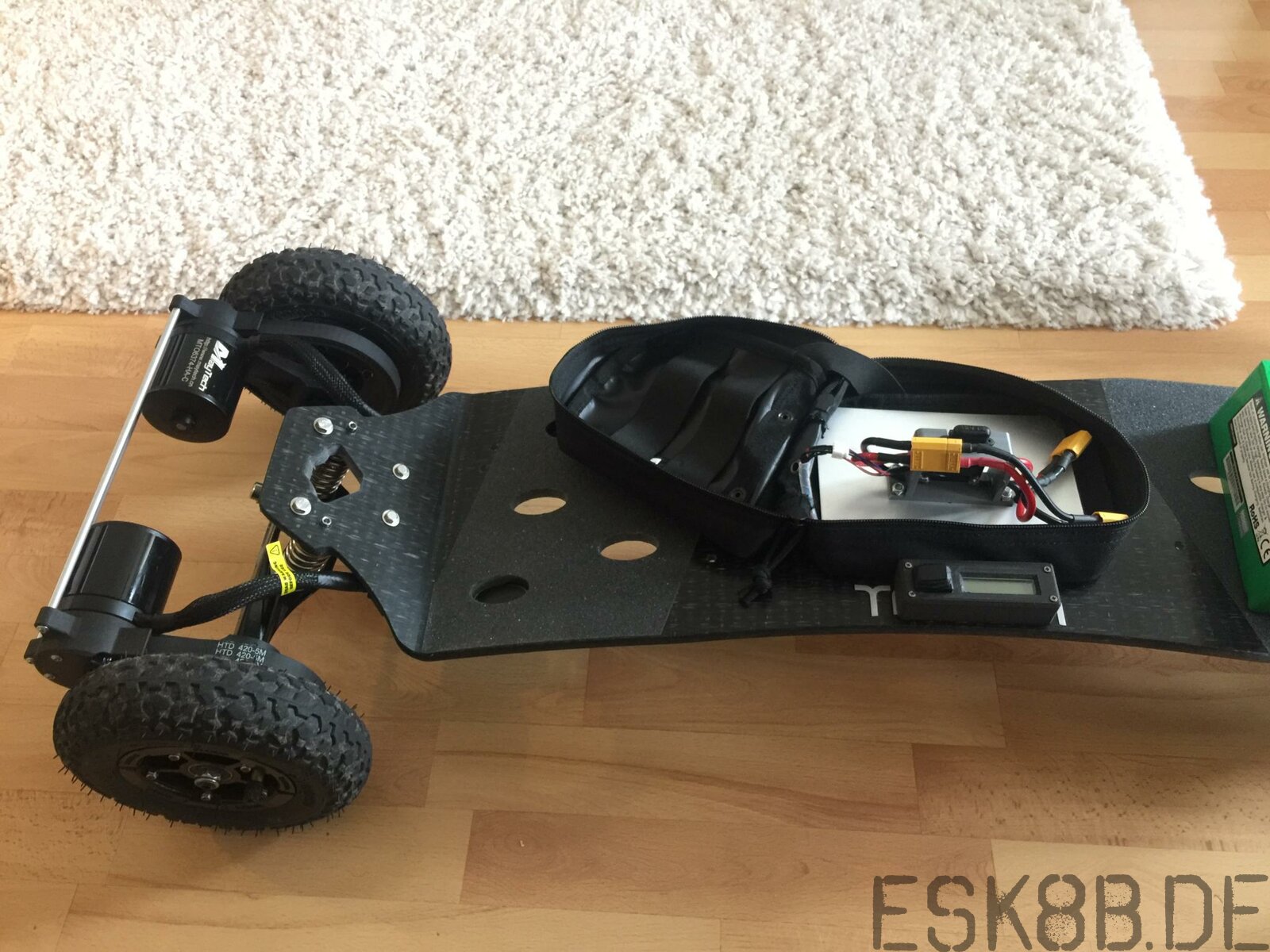 Trampa_7Kw Geschrieben 23. März 2018 Geschrieben 23. März 2018 (bearbeitet) Servus, wollte euch kurz meinen Eigenbau vorstellen, der Antrieb ist komplett 3D-gedruckt. 2x Maytech 6374 sensored mit 170kv 3550Watt 2x Maytech Esc 120A läuft auf 12s mit einer Übersetzung von 4,8. Verwende 2x6s Turnigy 10Ampere in Serie. Ps: E-Skater aus dem Raum Bayern anwesend? freundlichste Grüße:peace: bearbeitet 23. März 2018 von Trampa_7Kw 1 1 Zitieren